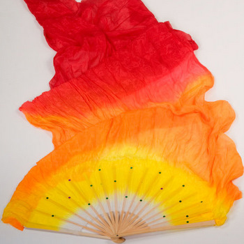 This special dancing fan is designed in long torch style. Made of 100% silk and decorated with sequins, the torch fan is characterized by the extra long fabric along the top edge that moves like fire when unfurled during the graceful fan dance taught in all Chinese classical dancing schools. The fan also makes an excellent wall decoration. Price is for one fan.