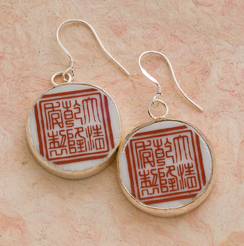 These earrings feature ancient Chinese characters on them. Made of silver, they will definitely stand out and get you noticed. Perfect for a night out or any occasion to show off your love of Chinese culture.
