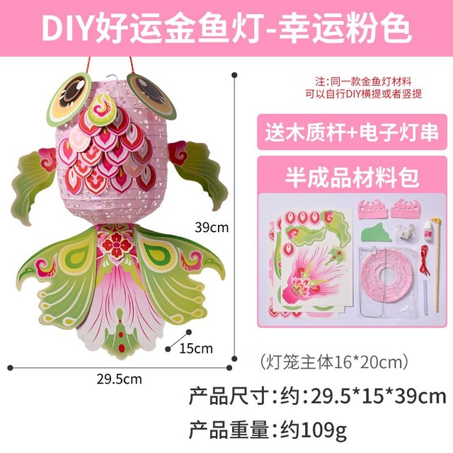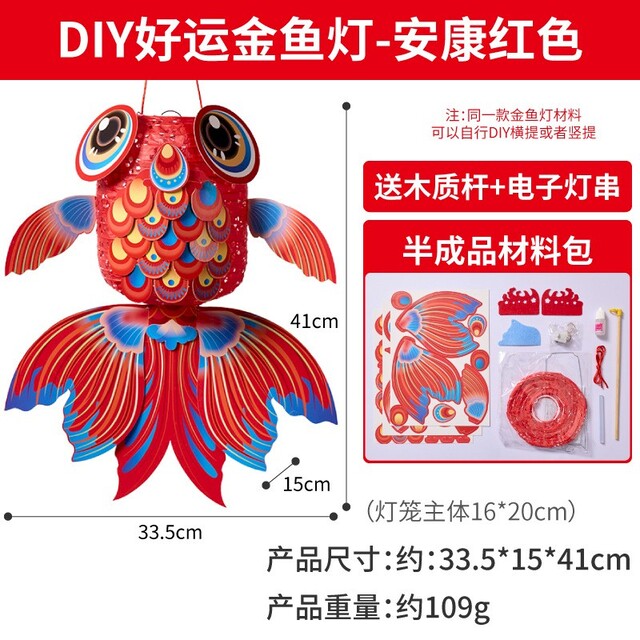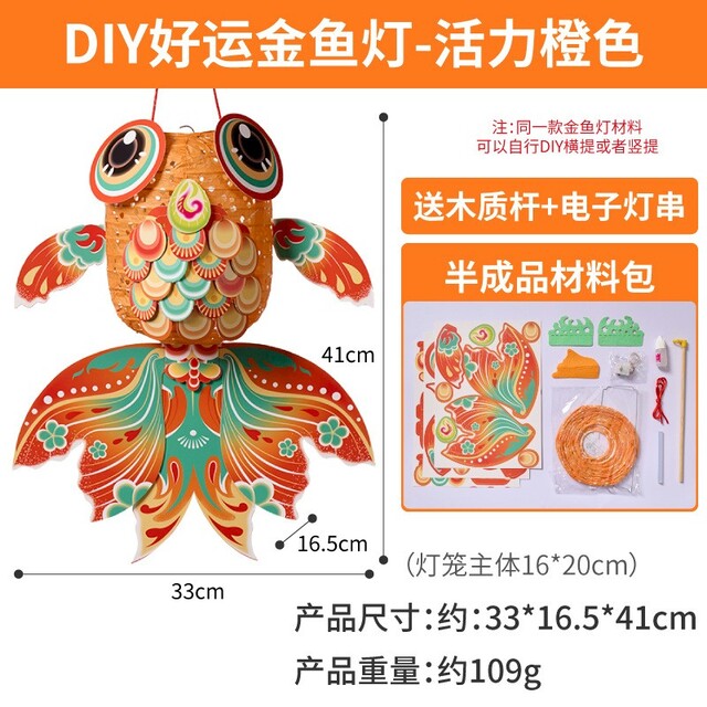A basic craft kit for assembling a fish-shaped lantern. The set includes all parts and materials needed for straightforward construction. Suitable for classroom activities, cultural projects, or home use, it provides a simple hands-on activity. Once completed, the fish lantern can be used as a decoration.