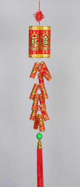 Firecracker wall hangings are a traditional Chinese New Year decoration. Firecrackers are used to scare off evil spirits and misfortune. This firecracker wall hanging comes in two sizes, each of which are topped with a traditional Chinese knot and finished with a tassel. The firecrackers are decorated with the Chinese characters "Chun" -- "Spring" and "Fu" -- "Good Luck" on two sides. Add this decoration to your New Years collection and hang it year after year to brighten your home and spirits for the New Year!
