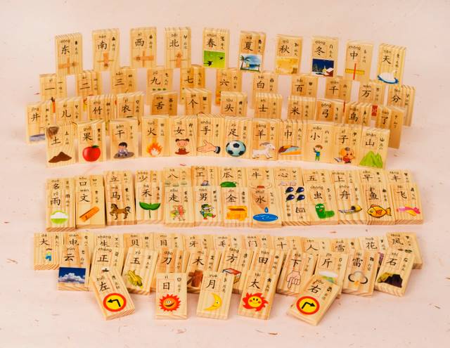 This domino set provides children and adults alike with a fun way to learn and apply their Chinese language knowledge. Using games as a way to teach Chinese is also a great replacement for other language tools, such as flash cards, as children are quickly engaged in the fun of learning. Each game piece has a Simplified Chinese character, Pinyin and graphic representation of the word on one side. The back side of the piece is blank. The vocabulary includes numbers, directions, fruits, and more. Play games by categorizing them, or simply line them in queues and have fun making them fall. Not for children under 3 years old.