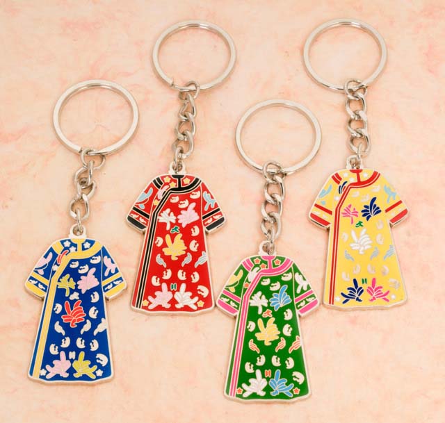 Designed with traditional Chinese outfits, these fashion ornaments are sure to be a hit with any set of keys. Liven up your set of keys with a little bit of China. Choose from yellow, red, green or blue.