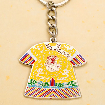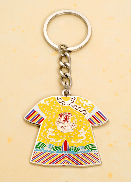 The robe of a Chinese emperor is called a long pao and it is very distinct from the clothing of other officials. It is golden in color and includes meaningful symbols including a nine-clawed dragon, clouds, waves and mountains. This keychain depiction of an emperor's robe will liven up any set of keys with a little bit of China.