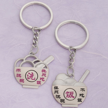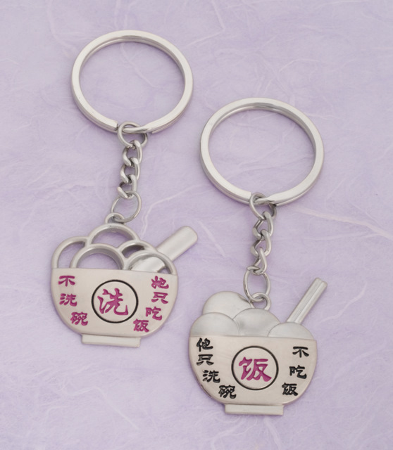 Designed with rice bowls and chopstick, these fun ornaments are sure to be a hit with any set of keys. Liven up your set of keys with a little bit of China. A set of two rice bowls with Chinese characters means "He washes dishes only, doesn't eat" and "She eats only, doesn't wash dishes". Another set of rice bowl and chopstick decorated with eternity pattern. Choose from a set of two rice bowls or rice bowl and chopstick.