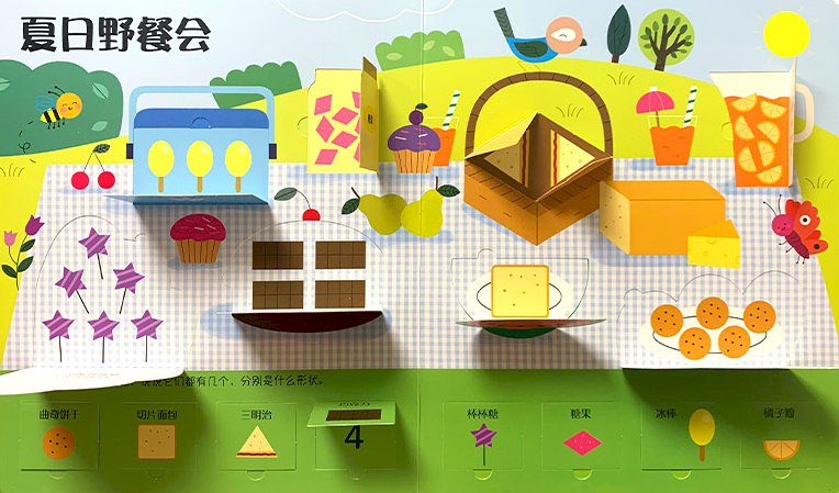《形状》带孩子学习菱形、圆形、长方形、星形、三角形、半圆形、椭圆形、正方形等形状。在港口、马戏团、海边、生日会、野餐等场景中不断巩固、强化这些形状的名称。同时也设计了形状之间的转化,让孩子明白形状与形状之间的联系。