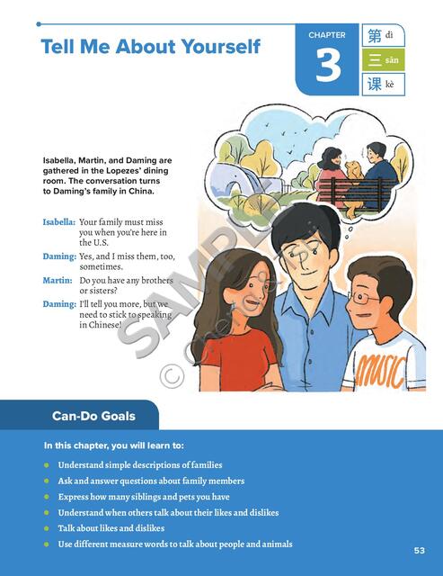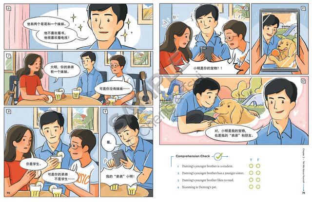 In Level 1, students follow Isabella and Martin Lopez, two American teenagers whose mother receives a work assignment overseas, as they begin learning Chinese, move to China, and explore their new neighborhood in Beijing. Each Chapter brings a new episode in the lives of the Lopezes in the form of an entertaining comic story that combines the Chapter vocabulary and grammar in a novel way.