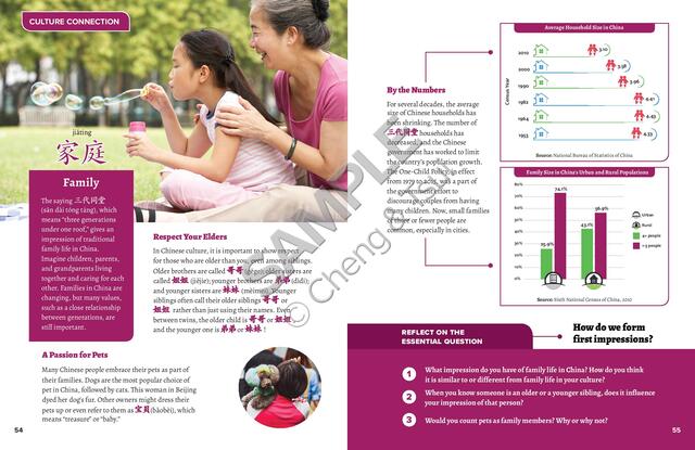 In Level 2, students accompany American teenagers Isabella and Martin Lopez as they plan a trip and travel west to and the surrounding countryside. Topics build  upon students’ existing cultural knowledge of China, ranging from Chinese performance art, ethnic groups, and Chinese history.