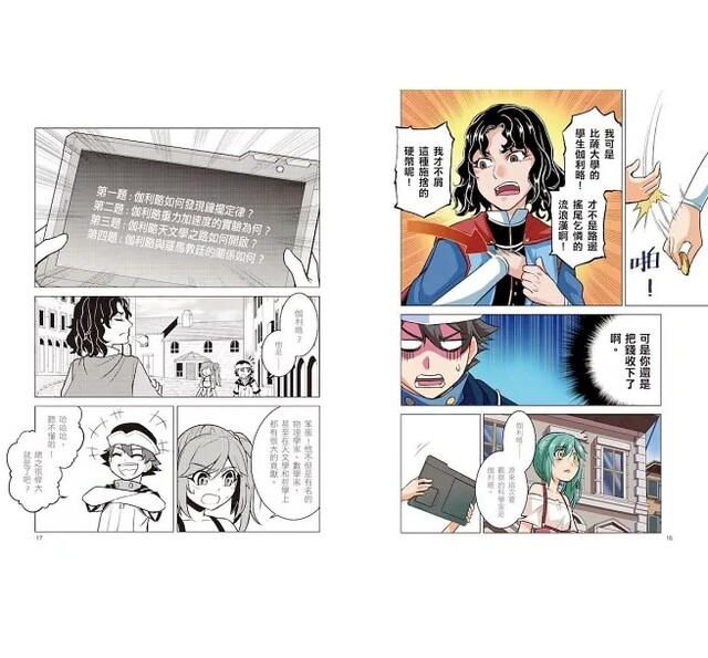 「漫畫篇」:透過精采的穿越故事,讓讀者跟著超科少年主人翁:仁傑、亞琦、還有小跟班飛鼠小颯一同冒險,掉入科學家生長的年代,憑藉著科學家與超科少年的牽手互動,親自與科學家討論相對論,以及見證其重要研究與影響。