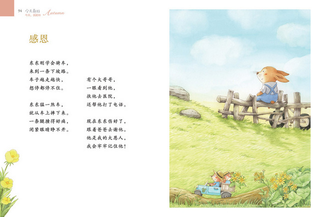 今天,真好听蝉声,看烟火,收到意外的礼物。今天,真好!学游泳,交朋友,贏了比赛不骄傲。今天,想更好!早起说早安,常常开口说谢谢。今天起,我为自己加加油;今天起,我越来越棒!林良爷爷以孩子365天的生内容为题材,创作了150首诗歌,就像孩子的成长日记。每一篇都朗朗上口,孩子读得心满意足,自然而然提高语言敏感能力。而且能轻松掌握生活技能,学会阳光的思考方式,养成良好的日常习惯。
