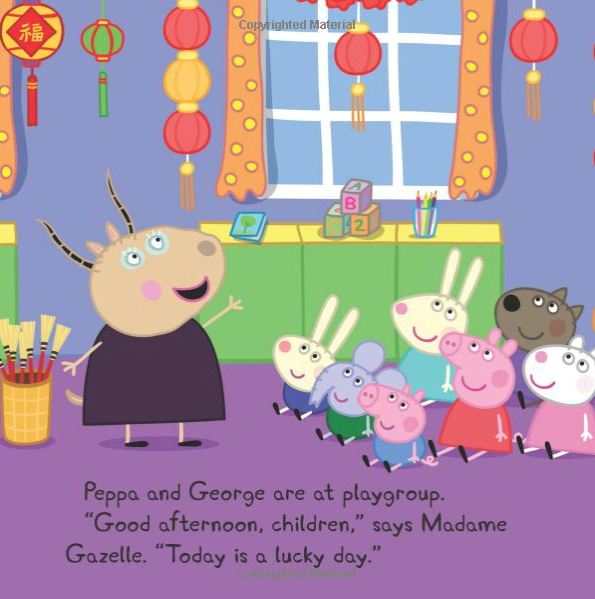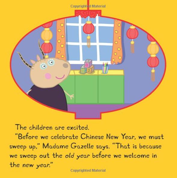 It's the year of the Pig--Peppa Pig, that is! When Madame Gazelle tells the children it's time to celebrate Chinese New Year, they couldn't be more excited. Peppa and her friends hang lanterns, eat fortune cookies, and put on a dragon dance! This beautiful 8x8 comes with a sheet of stickers. There's also a sheet of fun facts in the back about Chinese New Year. It is based on the hit TV show on Nick Jr.