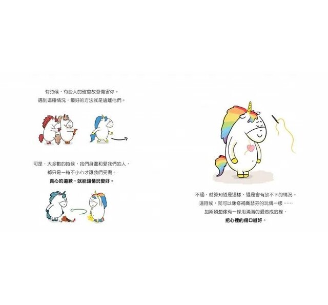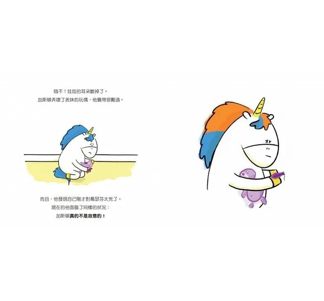 《我學會原諒》快來跟加斯頓一起化解誤會,練習不困在負向情緒裡!加斯頓的鬃毛會隨著心情改變顏色,而且他和你一樣,會因為別人犯的錯而生悶氣……加斯頓正在溫室裡打理花花草草,表妹約瑟芬突然拜訪,本來應該是很開心的一件事,卻因為約瑟芬熱切的想參與所有事情,把東西用得一團亂!氣呼呼的加斯頓跑回家,沒想到一不小心,就把表妹心愛的玩偶用壞了……愧疚的加斯頓,突然懂得約瑟芬的心情。感到抱歉的加斯頓可以怎麼辦呢?