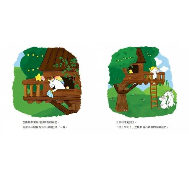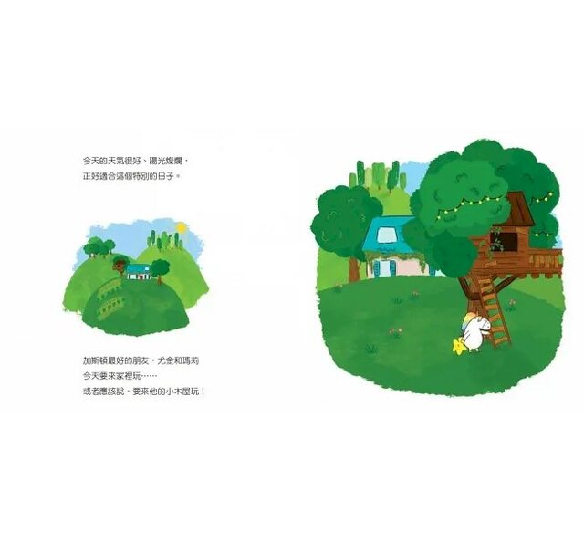 《分享最快樂》快來跟加斯頓一起練習分享,學習和朋友相處的小祕密!加斯頓的鬃毛會隨著心情改變顏色,而且他和你一樣,有時候不想讓朋友碰他的玩具……今天加斯頓好興奮,他最好的兩位朋友要到他的樹屋一起玩呢。只是,朋友每碰一樣東西,加斯頓都要他們小心、不要弄壞了,也不願意分享摺紙飛機的祕訣。結果,朋友玩得都很不盡興、不歡而散,留下加斯頓一個人……加斯頓很難過,為什麼朋友不願意和他玩呢?心急的加斯頓可以怎麼辦呢