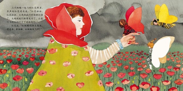 《三只蝴蝶》这个故事由季华老师创作,选择了小朋友生活中比较熟悉的蝴蝶为角色,讲述了三只蝴蝶在避雨的过程中不离不弃的友情故事。幼儿年龄小,喜欢“以自我为中心”,缺乏友爱互助的品质,这个故事既符合幼儿年龄特点又符合孩子的现实需要,不仅可以带给孩子有趣的故事,还可以在语言和社会两个领域促进幼儿的发展,所以这个故事流传至今一直深受家长和孩子的喜爱。