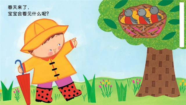 美国低幼绘本大师卡伦•卡茨经典代表作,美国家喻户晓,持续畅销10年,是陪伴宝宝渡过婴幼儿期的zui佳读物。让宝宝了解四季的特点,动物和其他事物的变化,感受大自然的美好。每个画面都是粉粉嫩嫩的,色彩明亮,符合宝宝的喜好,促进宝宝的视觉发展。24个创意小翻页,增强了图书的趣味性和互动性,引导宝宝自己翻翻看,既认知了各种事物,又锻炼了动手能力。厚实的纸板书,咬不坏撕不烂,贴心的磨圆角工艺和绿色印刷,保证宝宝的安全阅读