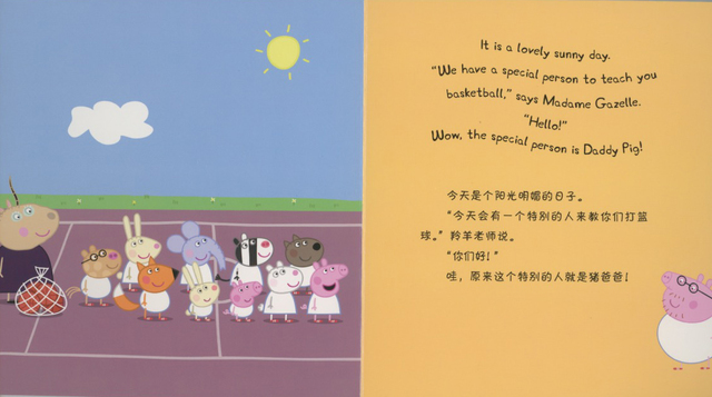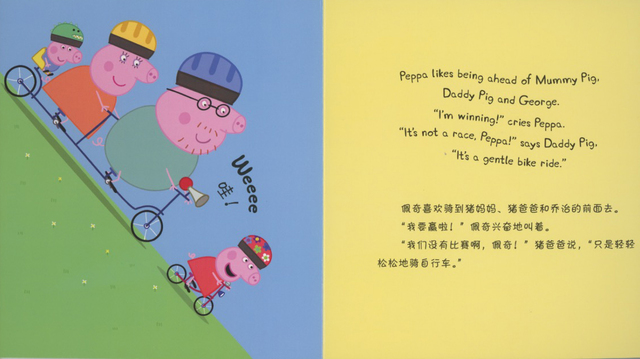 本套书为继《小猪佩奇双语故事纸板书》之后,为低年龄段儿童打造的中英双语纸板书,分别是《自行车比赛》《佩奇打篮球》《体育课》《佩奇去滑冰》《趣味长跑》。每本书分别讲述了一个关于运动的小故事,幽默欢快,当城市生活、电子产品逐渐成为孩子们生活的主要内容时,小猪佩奇带领孩子们体验不同的运动,享受户外清新、健康的空气,回归自然,一起锻炼强健的体魄!