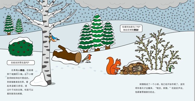 《冬天的道别》冬天到了!地上积了厚厚的雪,外面好冷呀!很多动物都躲在自己温暖的窝里睡大觉。松鼠也有点困了,但是在睡觉之前,他要去做一件重要的事情——向朋友们道晚安!松鼠的朋友们都睡在哪里呢?另外,每一页中都有雪花莲哦,找找看吧!