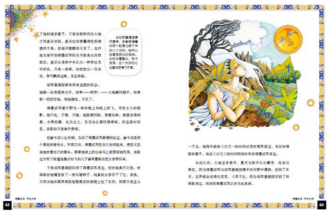 从神力无边的太阳神拉,到温柔的守护神及贤妻良母阿赛特,本书收录了多篇迷人的埃及神话,以优美、极具诗意的叙述方式,带领读者从天地起源开始探索,见证历经数十年的天神战役,并认识各位奇妙而迷人的埃及神祇。本书由获奖作家唐娜?乔?纳波利和获奖插画家克里斯蒂娜?巴利特携手合作,整部书是一件令人惊叹的艺术品。本书文字优美,画面精彩,描述了一个个充满生命活力的永恒神话故事,带给小读者无穷尽的想象空间。永恒经典的神话故事适合任何年龄段的读者,同时也是睡前故事的好选择。书中还提供有与神话情节有关的历史、文化和自然现象,帮助小读者拓展相关知识面,并附有古埃及地图,显示故事的地缘关系,让小读者对神话有更深的理解。