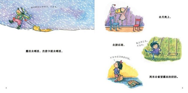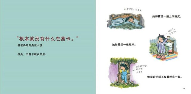 这是一本关于理解和接纳的温情绘本。露丝有一个非常要好的朋友,名叫杰茜卡。她们一起吃早餐,一起玩耍,一起分享快乐和伤心。但除了露丝之外,谁都看不到杰茜卡,包括露丝的爸爸妈妈和她幼儿园的同学们。直到有一个叫“杰茜卡”的小姑娘出现,将露丝带回有真正的朋友的生活,让她得以体验更加真实、快乐的友谊。