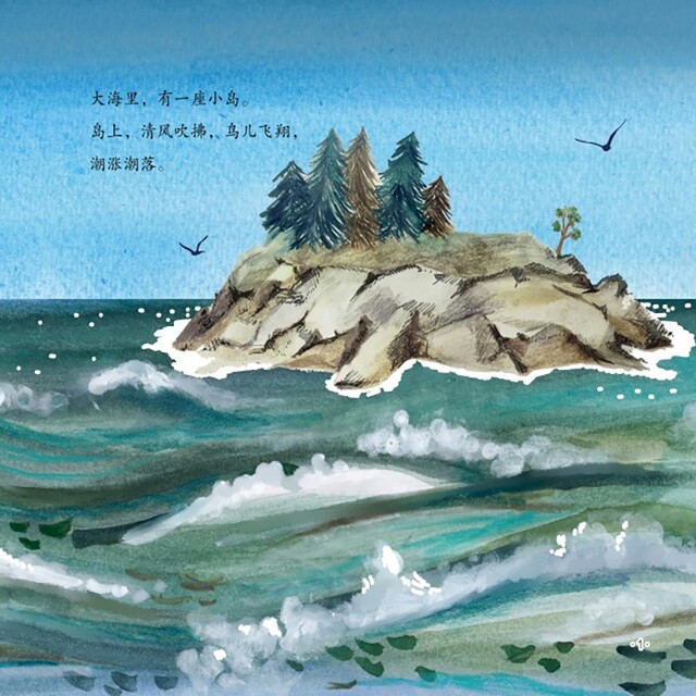 大海里,有一座美丽的小岛。岛上,清风吹拂,鸟儿飞翔,潮涨潮落……小岛和云朵耳语,和鱼儿嬉戏,和晨雾拥抱,冬去春来,寒来暑往,日复一日。