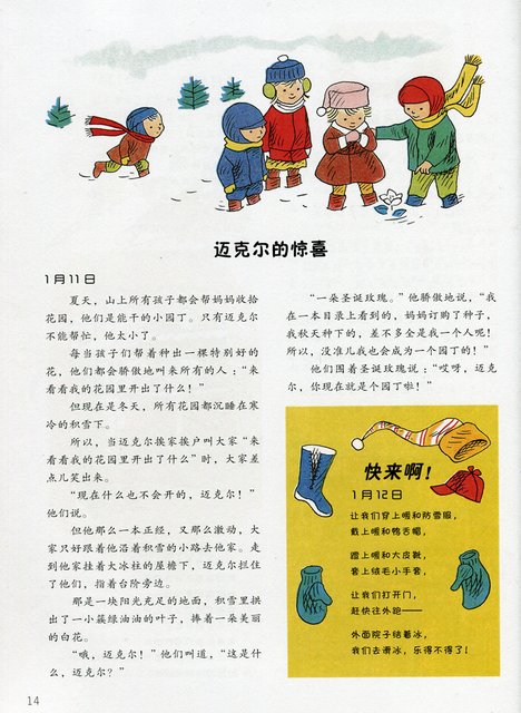 《斯凯瑞的365》由365个故事(诗)组成,主角包罗万象,从孩子到动物、植物,从家庭到自然。故事短小、有趣、生动;诗歌俏皮、幽默、欢快。作者、画者皆从孩子的视角表达,童趣味十足。全书由“春”“夏”“秋”“冬”四个部分组成,一些具有季节特征的故事(诗),被分放在相应的季节中。春天,去看什么动物从睡梦中醒来;秋天,与什么人一起去采果子;冬天,怎么堆雪人、打雪仗……每个故事(诗)一定会带给孩子惊喜,因为结尾肯定与猜想的不同,但肯定又能让孩子微笑,也许孩子还会发出喊叫:“太有趣啦!”。