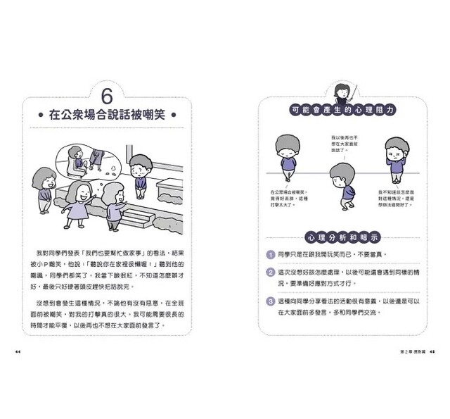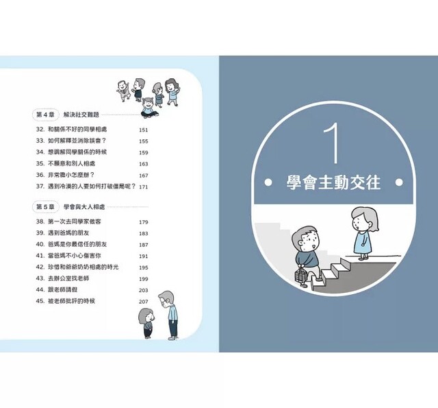 透過45個實例練習,孩子能夠學會在學校中處理好與同學的關係,還要練習如何與長輩打交道。其實,每位大人也曾經歷過這些心理問題,書中的解決方案對成人而言也終身受用。