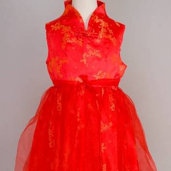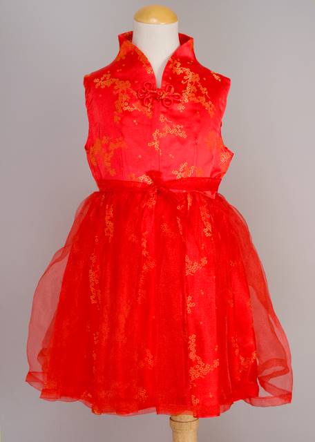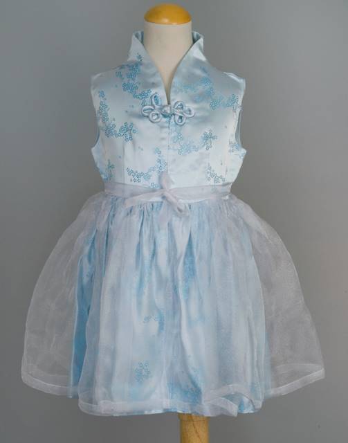 This beautiful, contemporary dress was designed by ChinaSprout and is carried here exclusively. Our playful dress features flowers, a large frog clasp in the middle and a voile design that will be sure to get your child noticed.