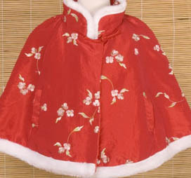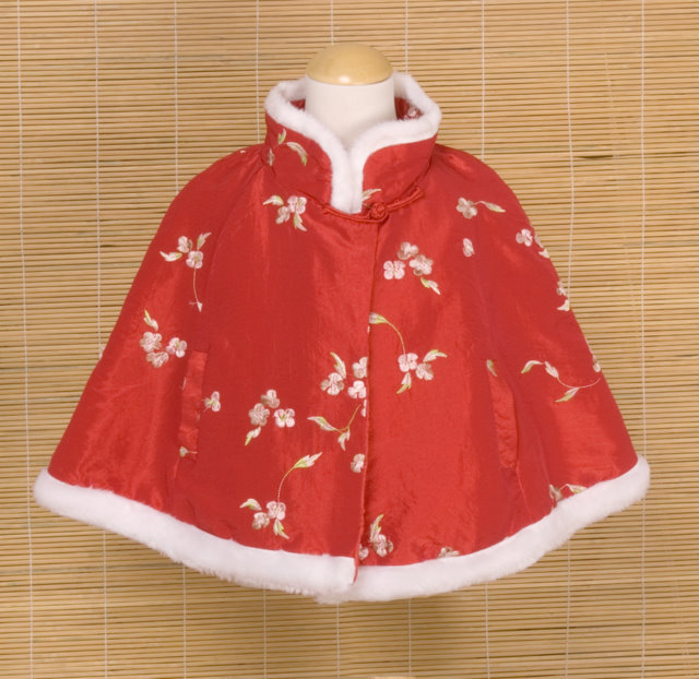 Designed by ChinaSprout, this padded cape is created with a dainty flower brocade and trimmed with white fake fur. Don't just save this cape for special occasions, make every occasion special when she wears this shimmering silk cape. Perfect for cold winter and early spring months! Please note these are American sizes, e.g. Size 2 fits an average 2 year old.