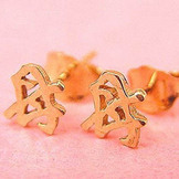 In 18K gold and mounted on posts, these bright and beautiful earrings are created from the Chinese character of "Mu" for "Mother." What Mom wouldn't love a pair of these exquisite little treasures? Match with our pendant and bracelet to create a lovely set.
