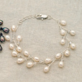 This stylish bracelet matches oval pearls and crystal beads to create a striking accent piece. Chic and refreshingly simple, the bracelet is available in white or black. Matching earrings and necklace available.