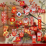 These auspicious greeting hangings wish you a Happy New Year and prosperity to you and those around you, you can hang them on the trees, doors, front mirrors and more. Price is for the set of 18 different hangings A Happy New Year 新年快乐款 B Prosperity 平安吉祥款