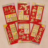 Elegantly decorated, these beautiful red envelopes are adorned with classical Chinese calligraphy characters for Good Luck, Happy New Year, and decorative Chinese symbols. The price is for a set of 6 envelopes.
